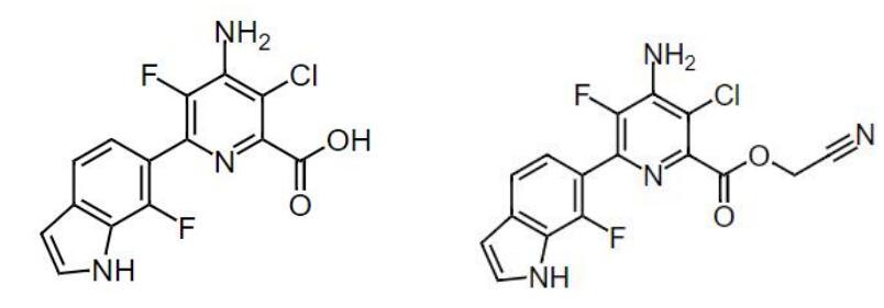 吲哚吡啶酸(indolauxipyr)為科迪華開發(fā)的一種吡啶甲酸類除草劑,開發(fā)代號(hào)為X-263和X12312263??频先A計(jì)劃上市indolauxipyr的氰基甲酯產(chǎn)品吲哚吡啶酯(indolauxipyr-cyanomethyl),開發(fā)代號(hào)為XDE-521和XR-521。